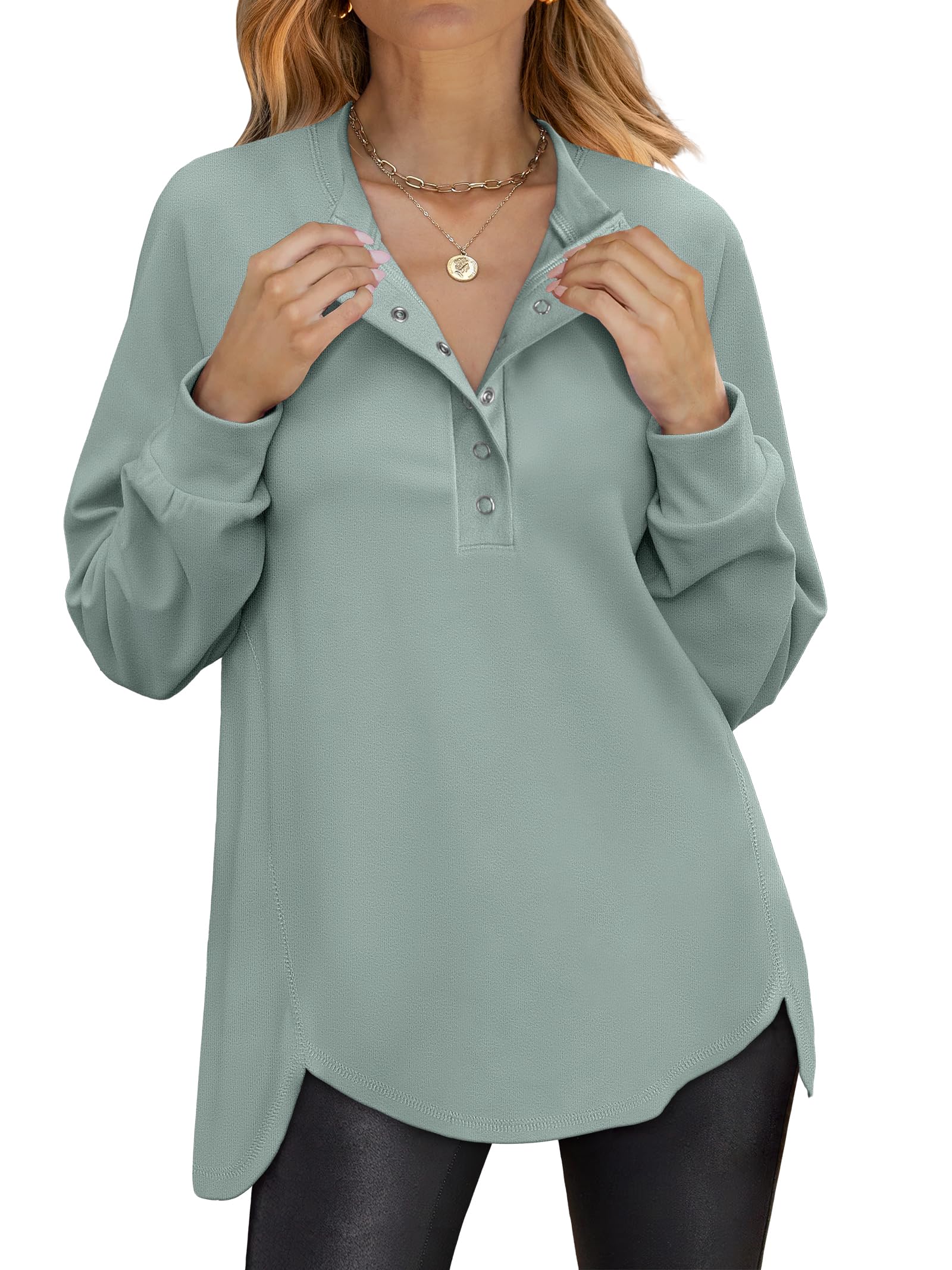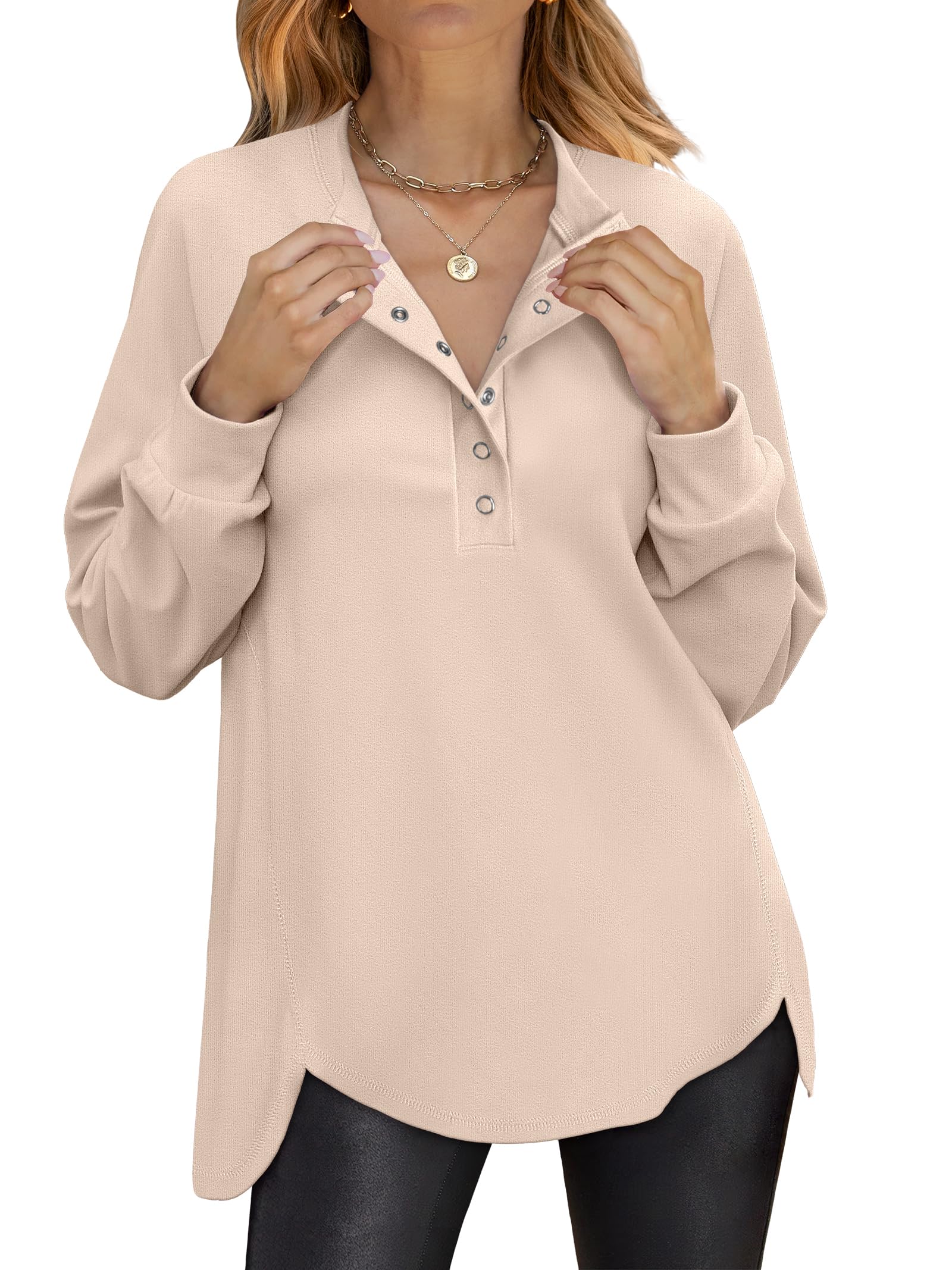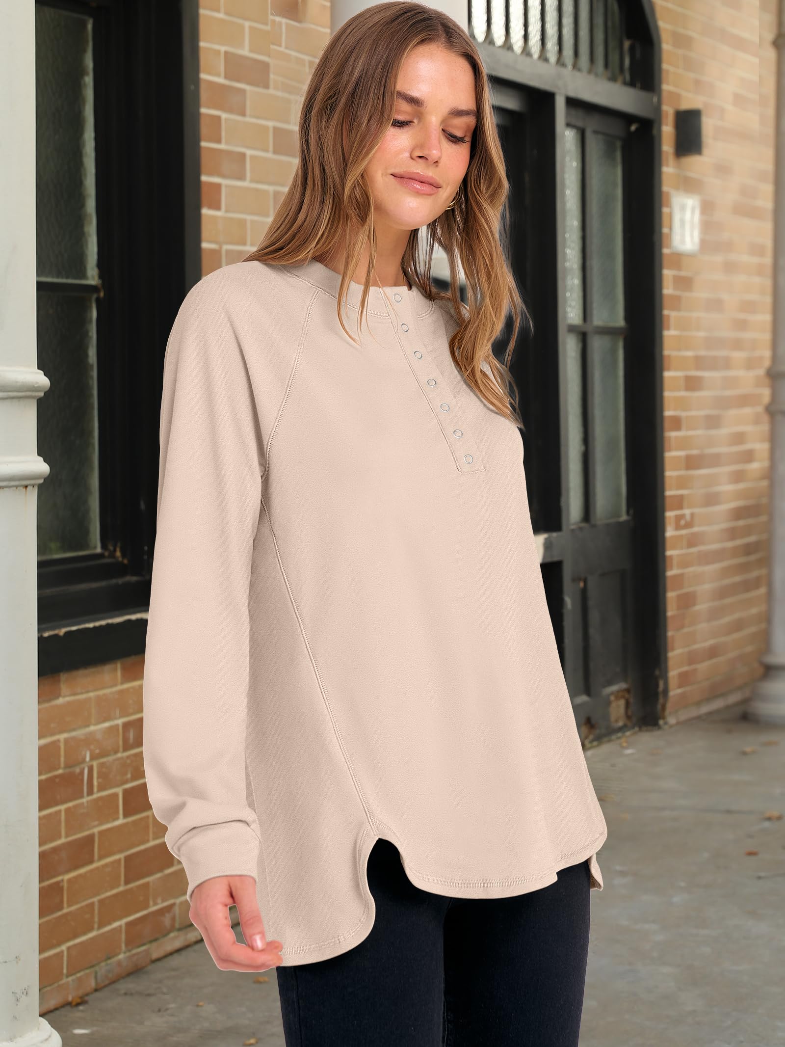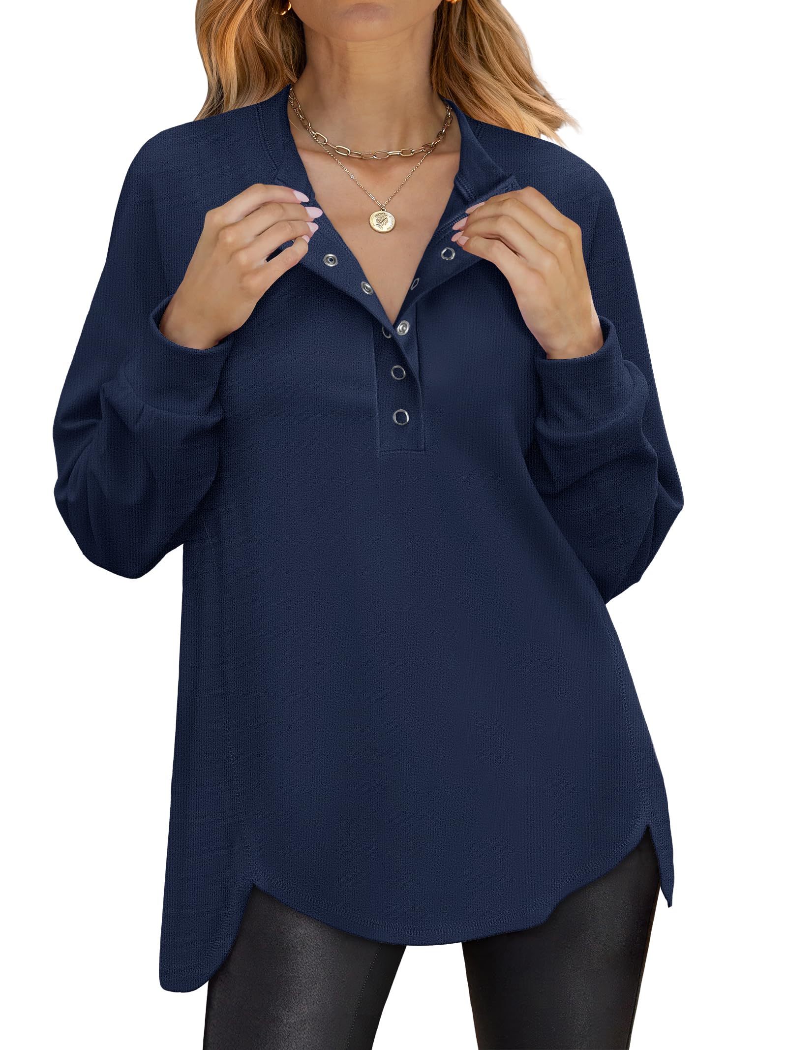 ANRABESS Women's Long Sleeve Henley Tops Tunic Sweatshirt Loose Slit Casual Button Shirts Pullover 2025 Fall Winter Outfits