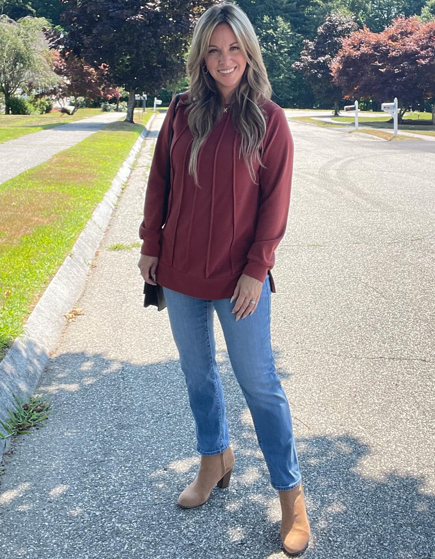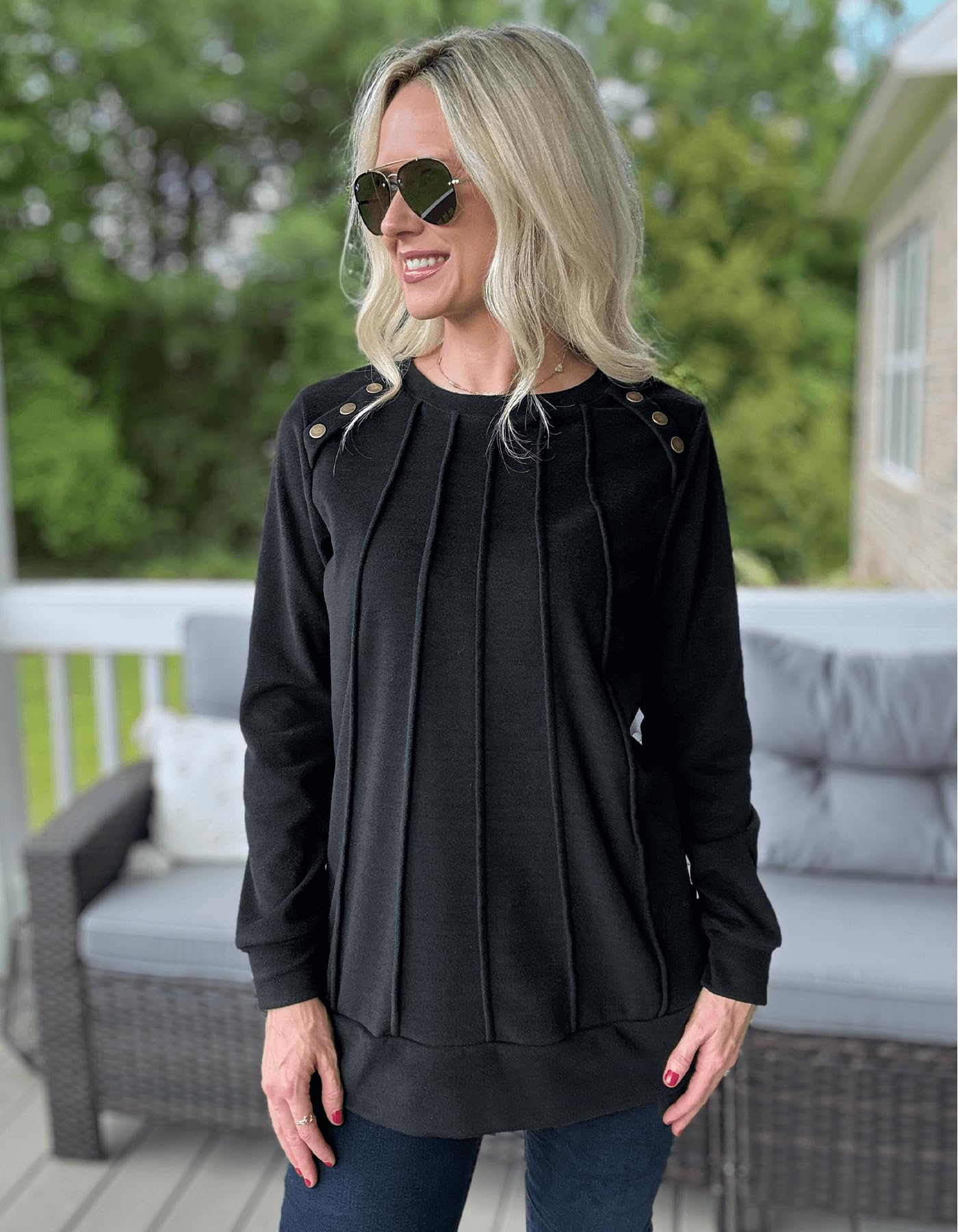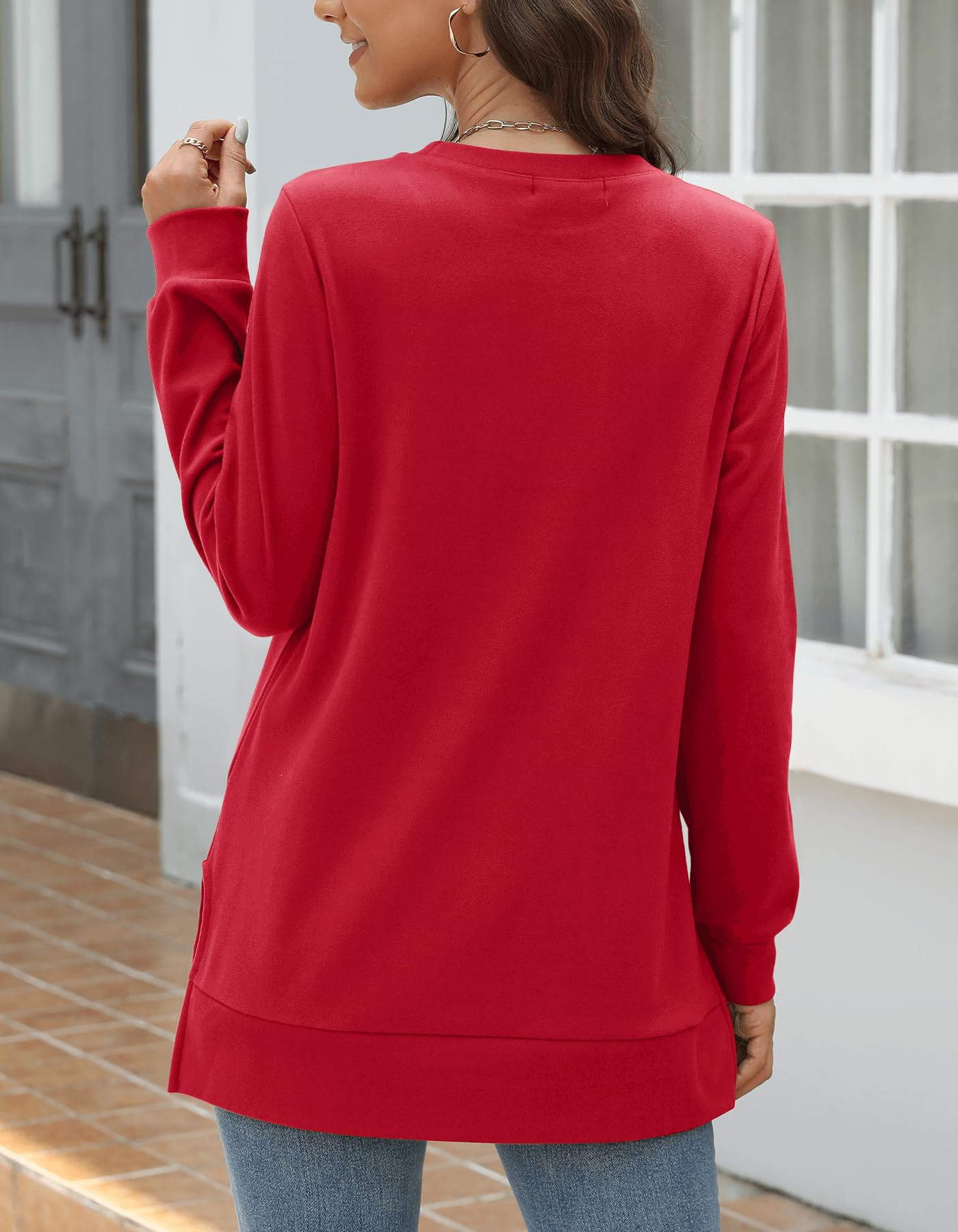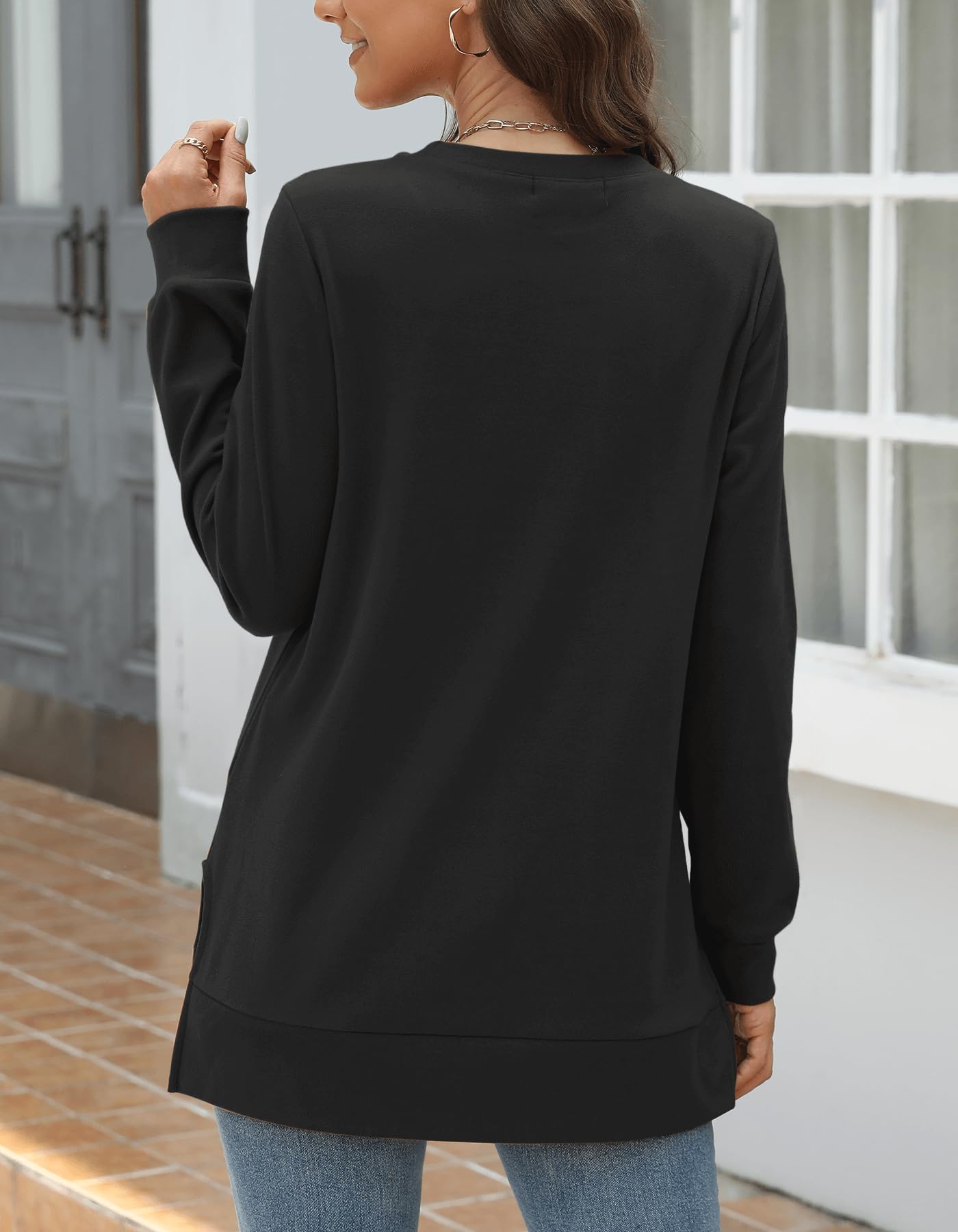 Odosalii Womens Long Sleeve Tops Crewneck Sweatshirts Pleated Front Sweaters Plain Shirts Trendy Side Split Fall Outfits