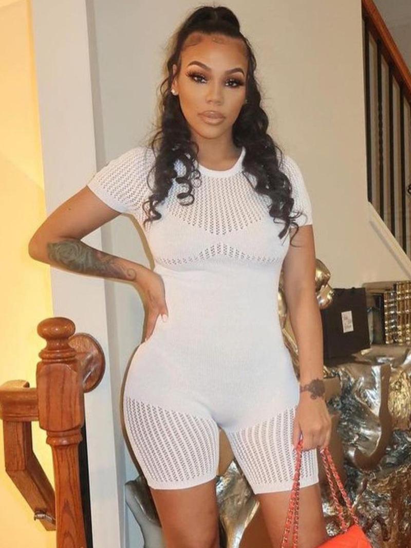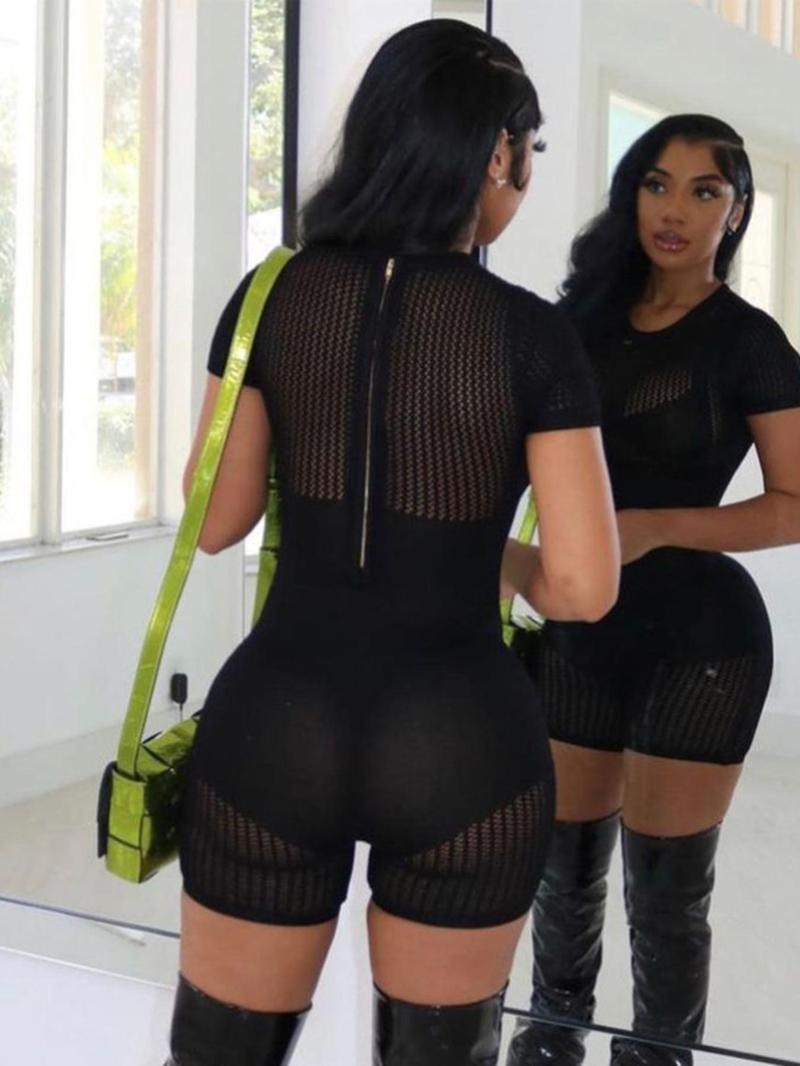Women'S Solid Sheer Round Neck Romper - Summer Fashion